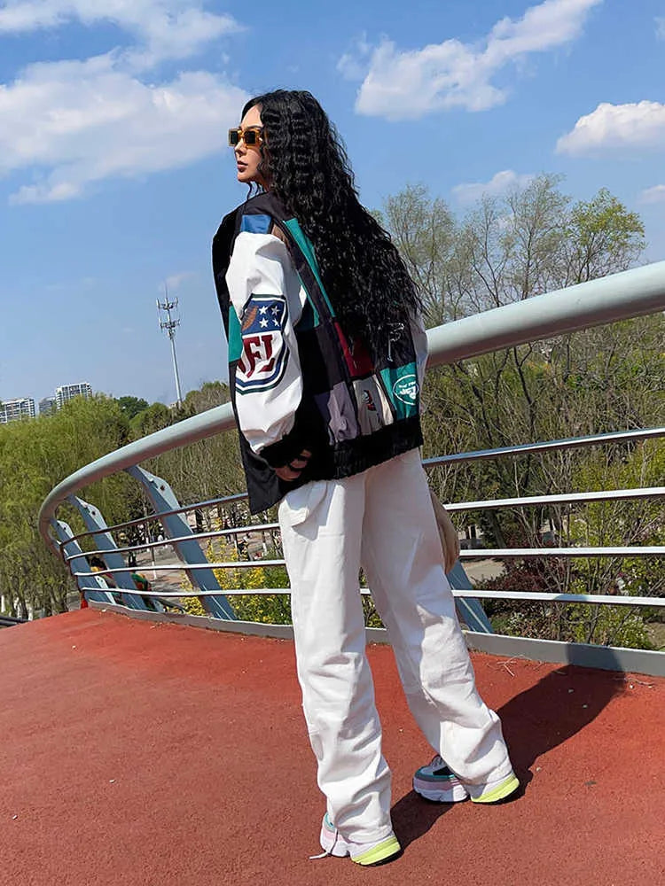 Loose Color Block Long Sleeve Trench Coat Jacket